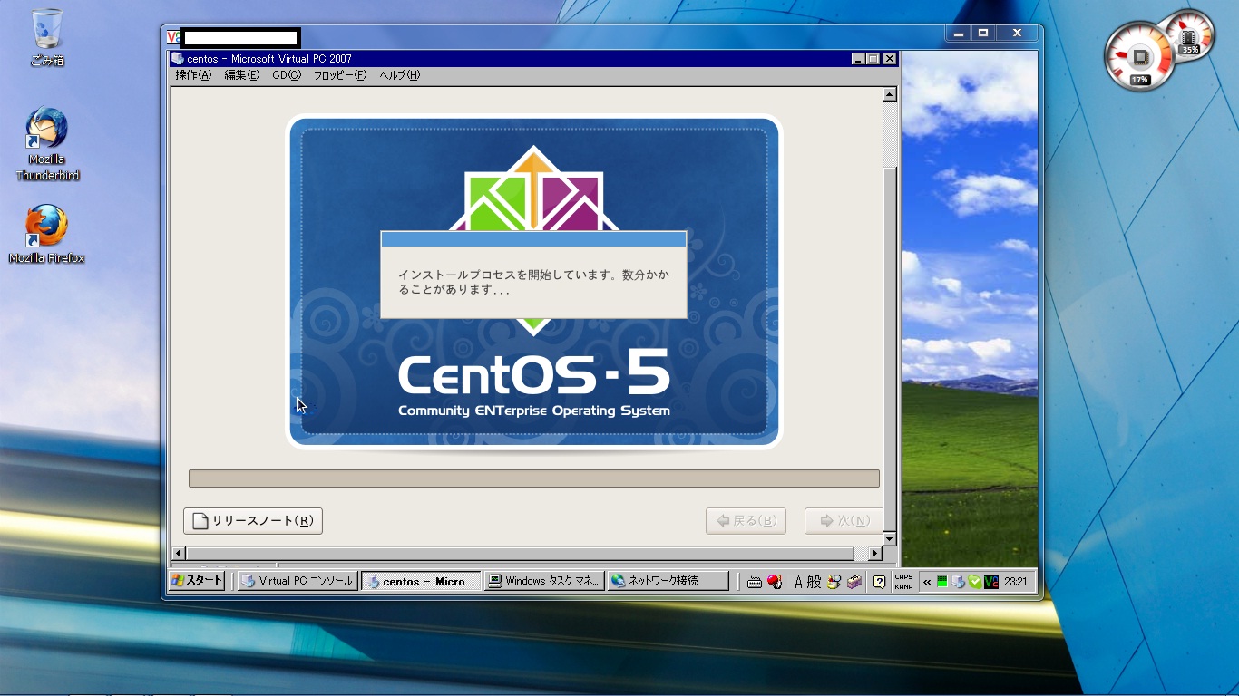 virtual PCにLinuxを導入し、XPマシンにはVNCで接続する。