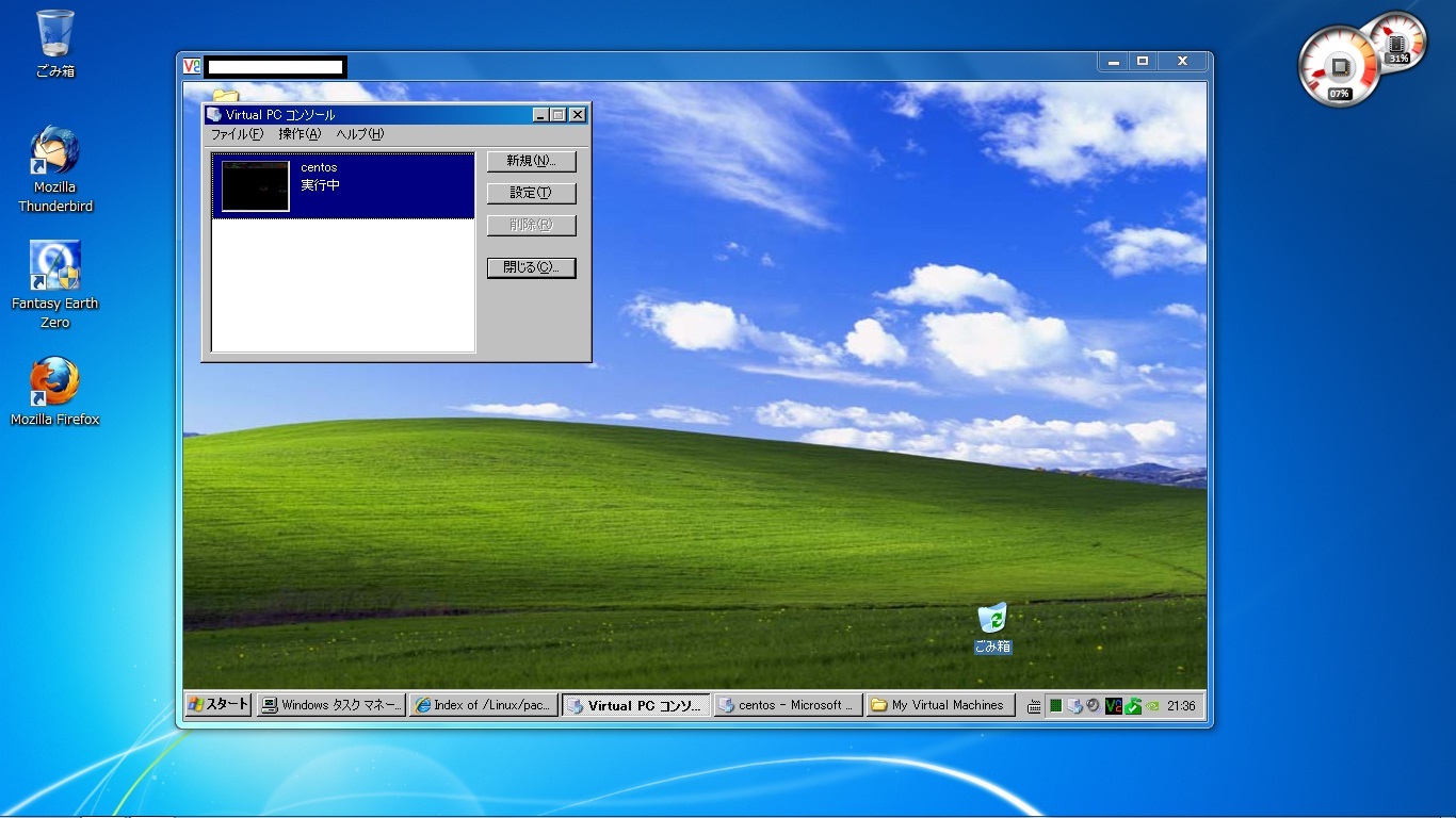 virtual PCにLinuxを導入し、XPマシンにはVNCで接続する。